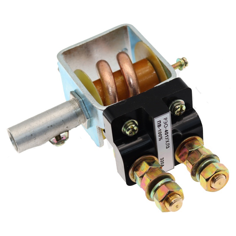 Реле максимального тока РЭО-401 предназначено для защиты от перегрузок и токов короткого замыкания электродвигателей постоянного тока и асинхронных электродвигателей с фазным ротором переменного тока при частоте сети 50Гц. Многополюсное реле РЭО-401 (состоящее из нескольких электромагнитных систем реле и одного блок-контакта, собранных на общей скобе), предназначено для комплексной защиты электродвигателей.